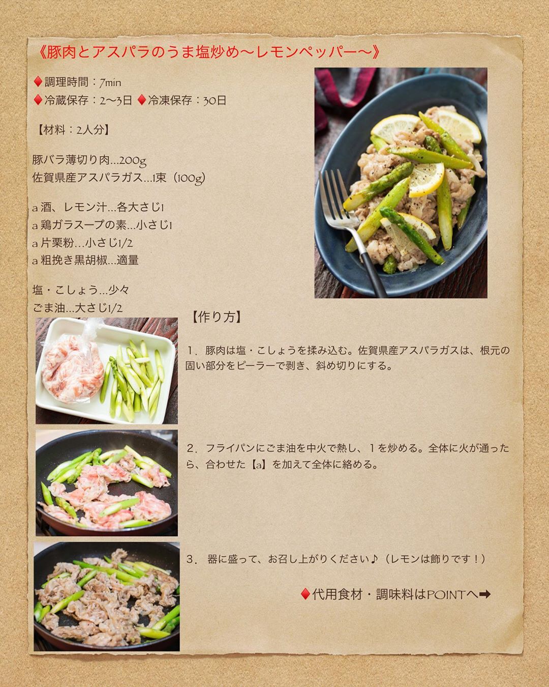 【『 #豚肉とアスパラのうま塩炒め 〜レモンペッパー〜』と『読売新聞に広告を掲載頂いていております』】#作り置き #冷凍保存 #お弁当