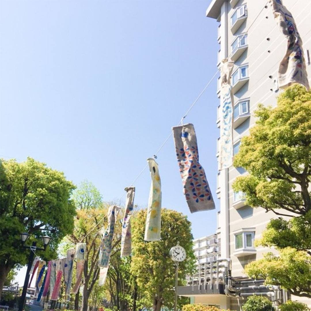 2020年5月には、商店街を盛り上げる「みんなでつくる鯉のぼり」を企画。新型コロナウイルスの影響の中、少しでも明るい話題を提供できればと、商店街のみなさんと無印良品のカーテンの残反を使った鯉のぼりを100匹以上作成しました。