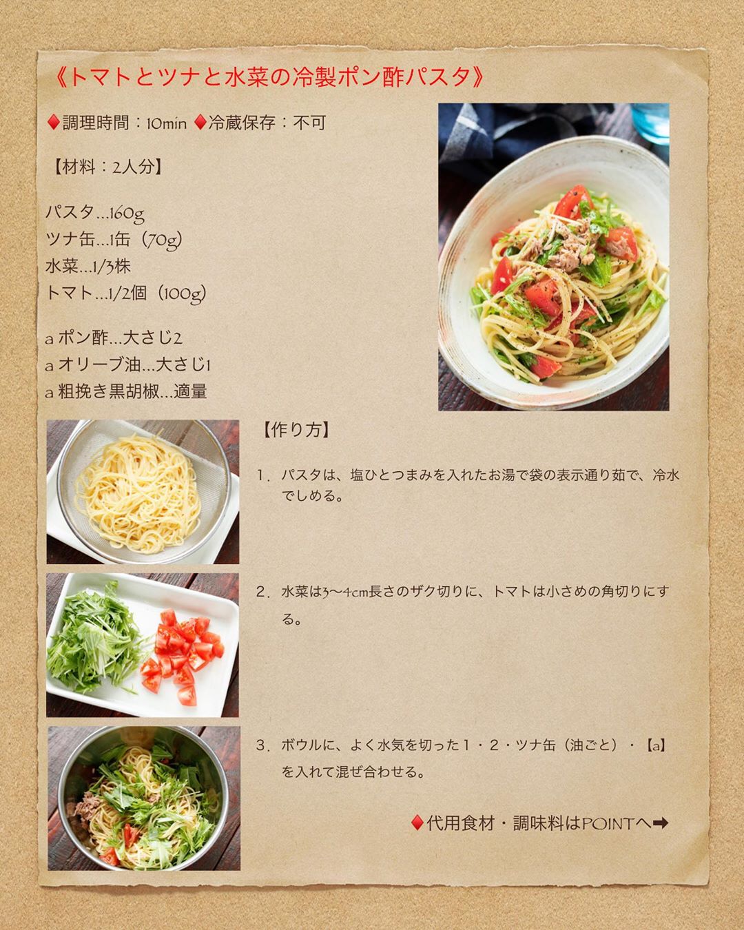 【『 #トマトとツナと水菜の冷製ポン酢パスタ 』と『献立を考えるのが劇的にラクになる6つの考え方』など】#混ぜるだけ #夏休み #ランチ