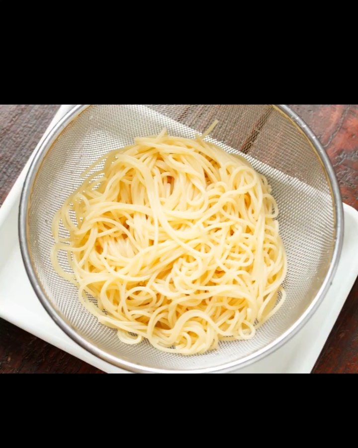 パスタを茹でて冷水でしめたら