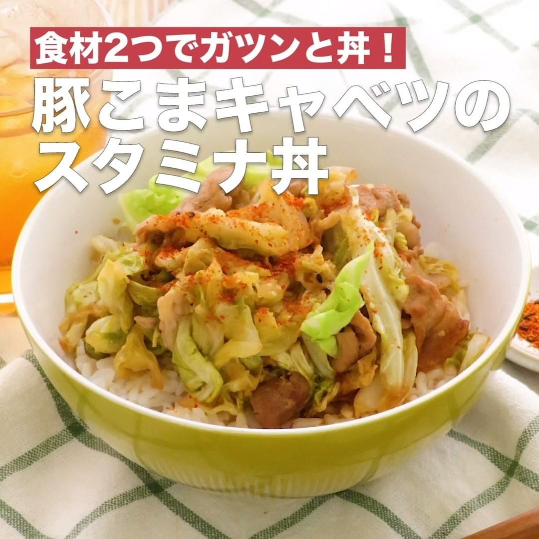 ②<食材2つでガツンと丼!豚こまキャベツのスタミナ丼>