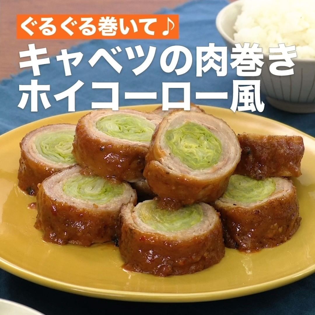 ⑧<ぐるぐる巻いて♪キャベツの肉巻きホイコーロー風>