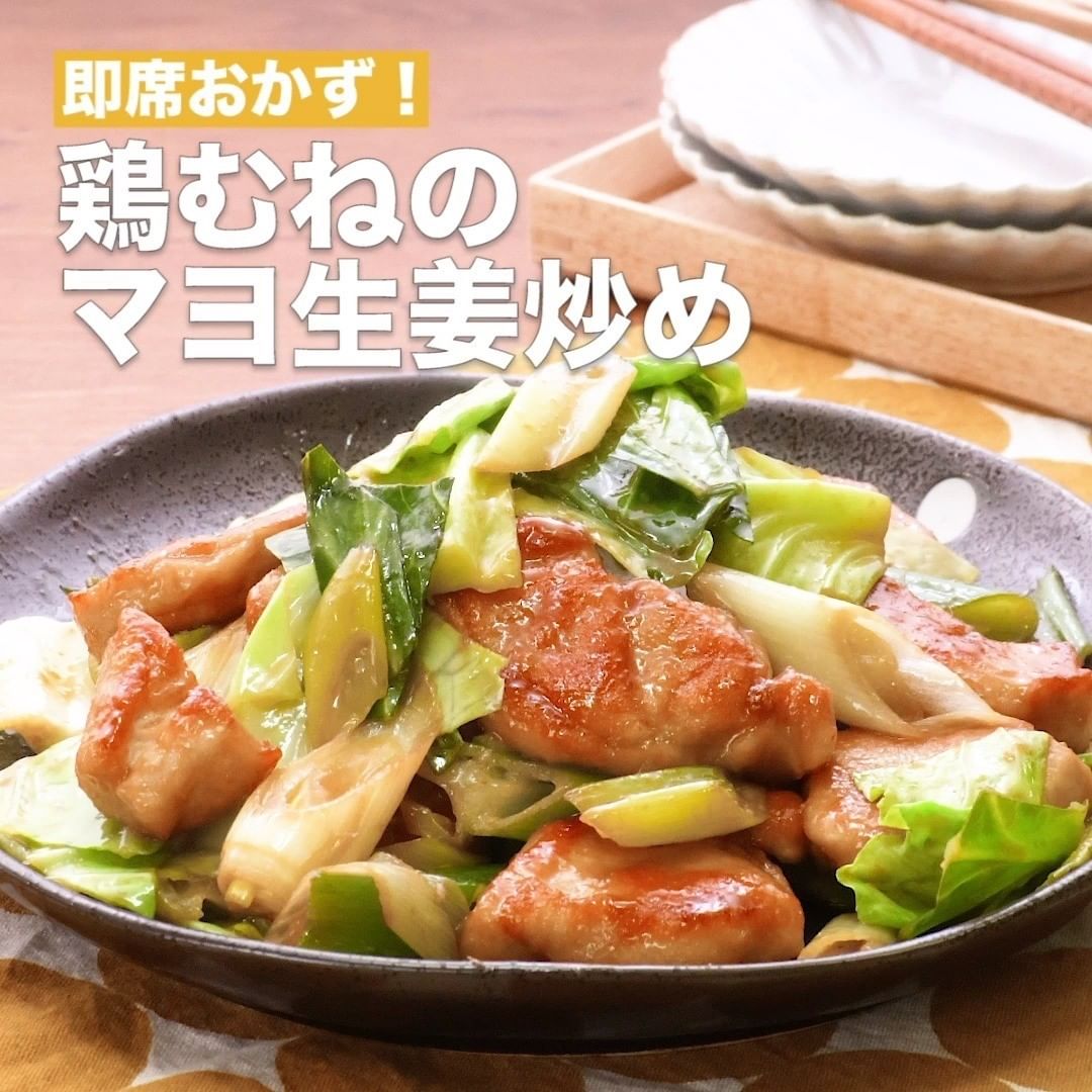 ①<即席おかず!鶏むねのマヨ生姜炒め>
