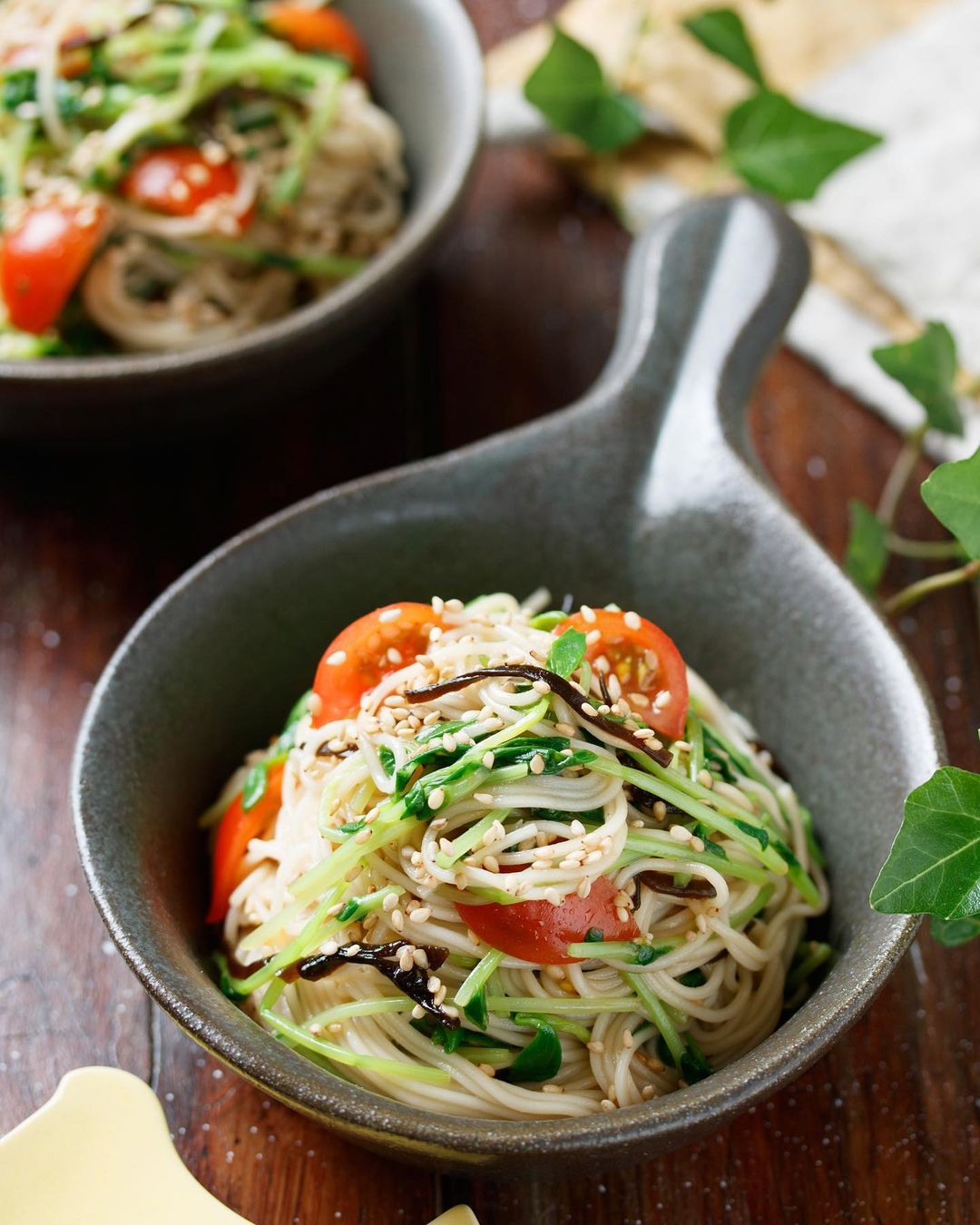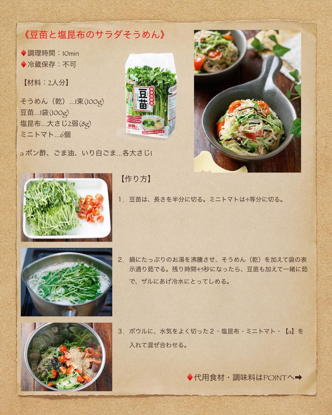 【 #豆苗と塩昆布のサラダそうめん】
