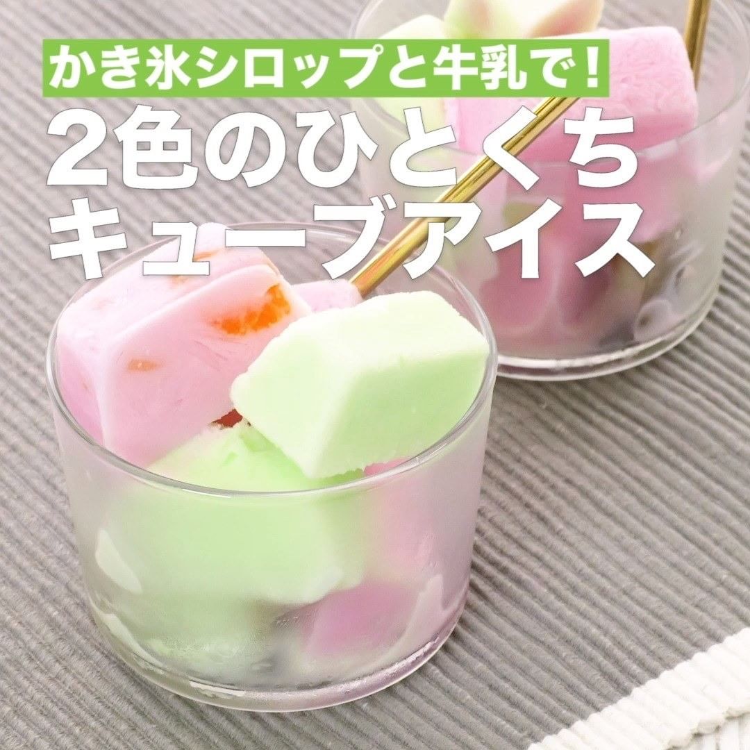 ⑦<かき氷シロップと牛乳で!2色のひとくちキューブアイス>