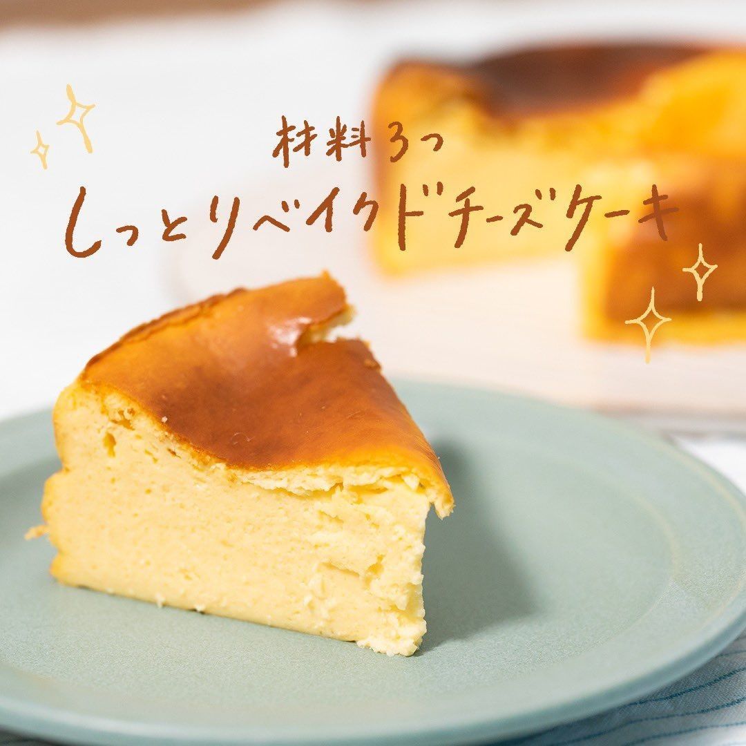 #おうちカフェ にぴったりの一品ですよ🍽 『材料3つ しっとりベイクドチーズケーキ』