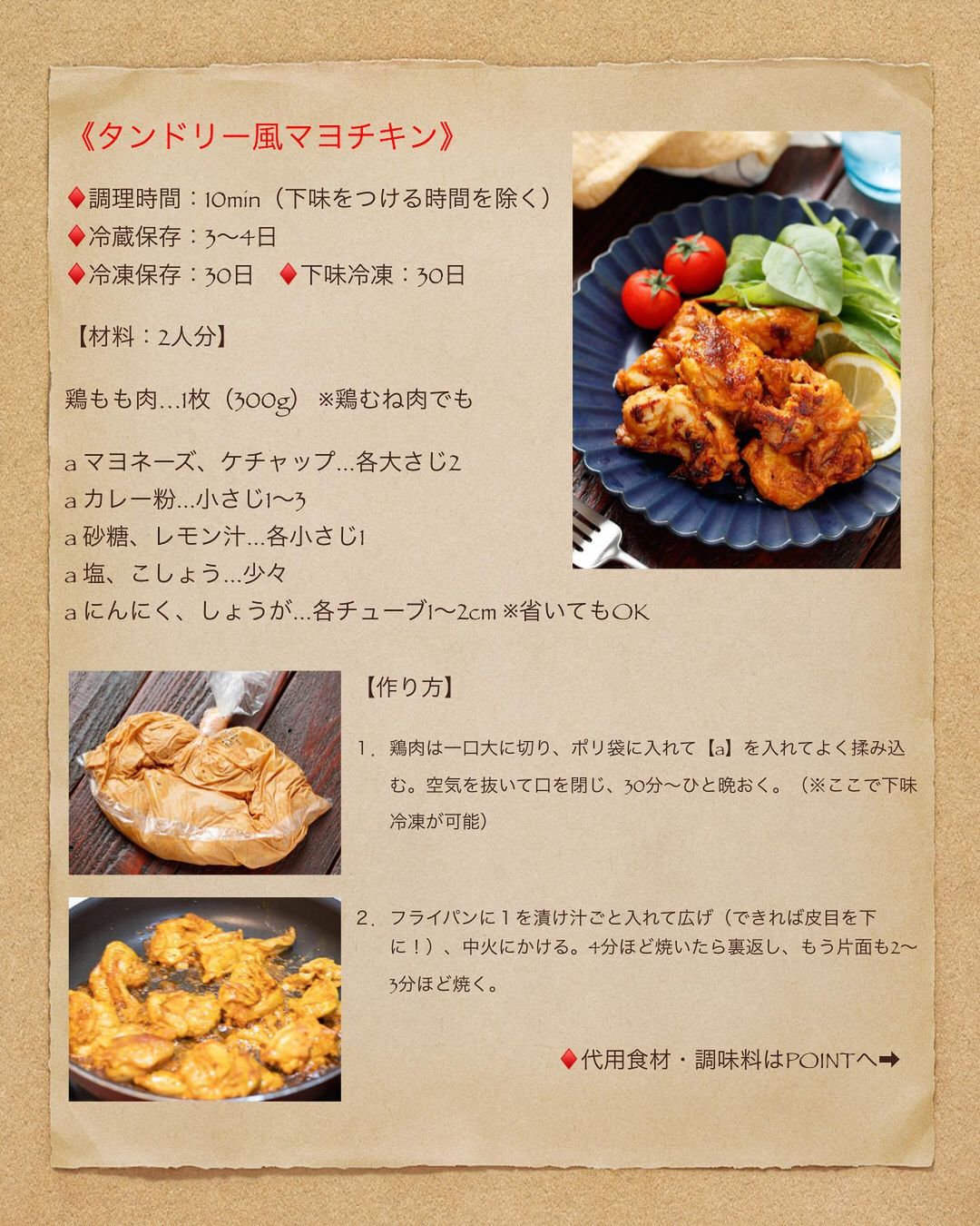 【 #タンドリー風マヨチキン 】#作り置き #下味冷凍 #冷凍保存 #お弁当 #鶏むね肉OK #ヨーグルト不使用 #ポリ袋 #漬けて焼くだけ #ノンオイル