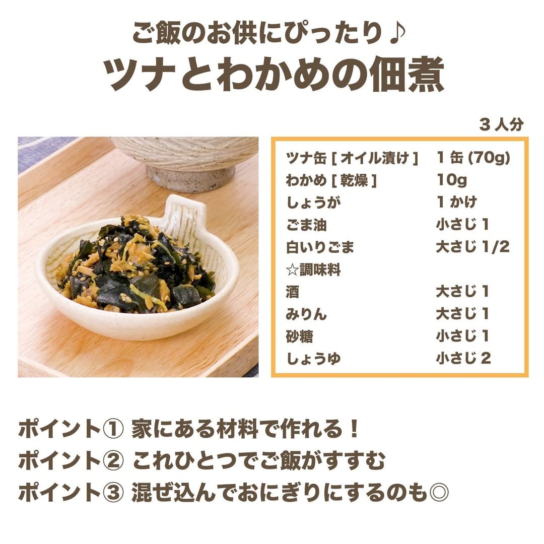 #今日のごはん #献立 #おかず #簡単料理 #時短レシピ #時短料理 #手作りごはん #手作り料理 #キッチングラム #簡単ランチ #おうちご飯 #お家ごはん #ツナ #ツナ缶 #わかめ #佃煮 #ご飯のお供