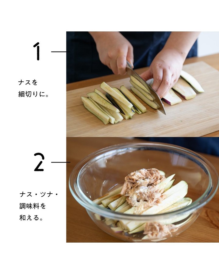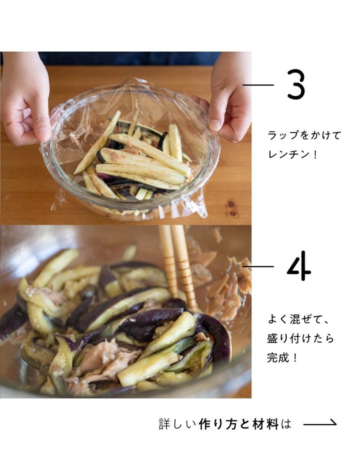 なすを切ったら調味料を加えて電子レンジでチンするだけ!