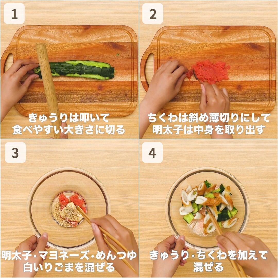 ちくわときゅうりの簡単和え物のご紹介!あと一品足りない時の救世主。きゅうりはたたくことで味がからみやすくなります!