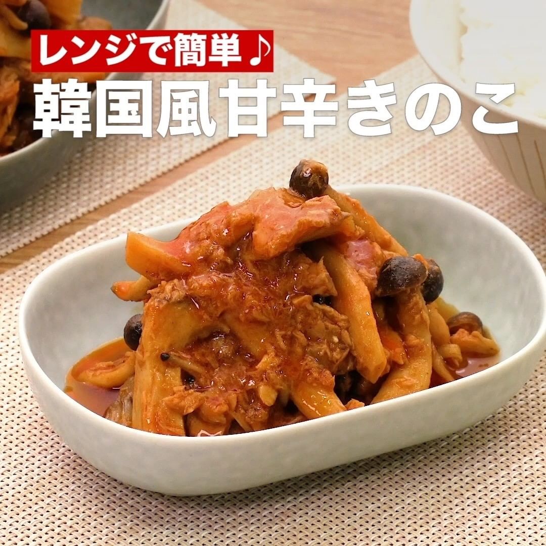 ①<レンジで簡単♪韓国風甘辛きのこ>