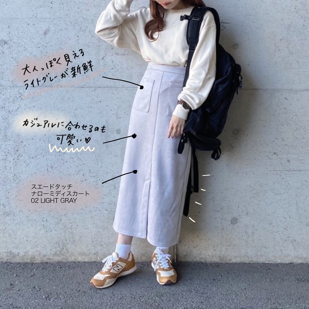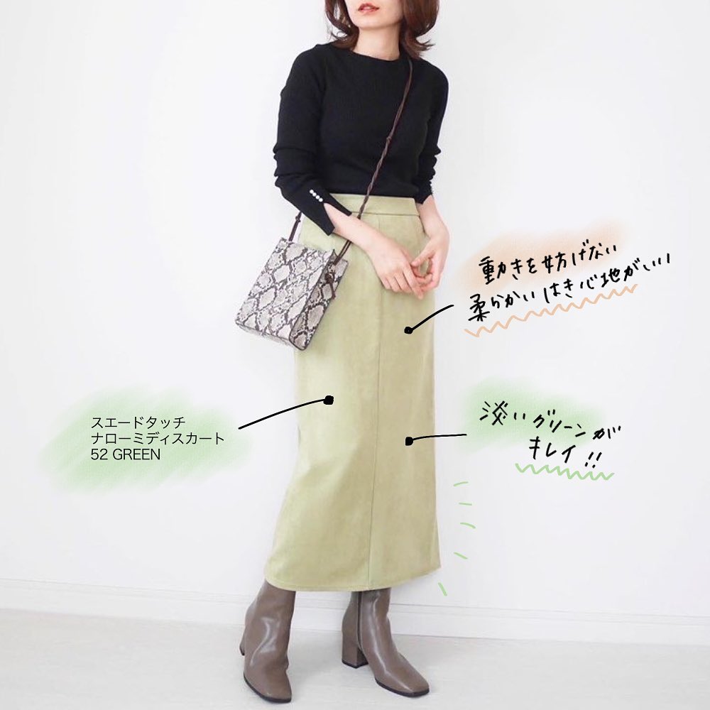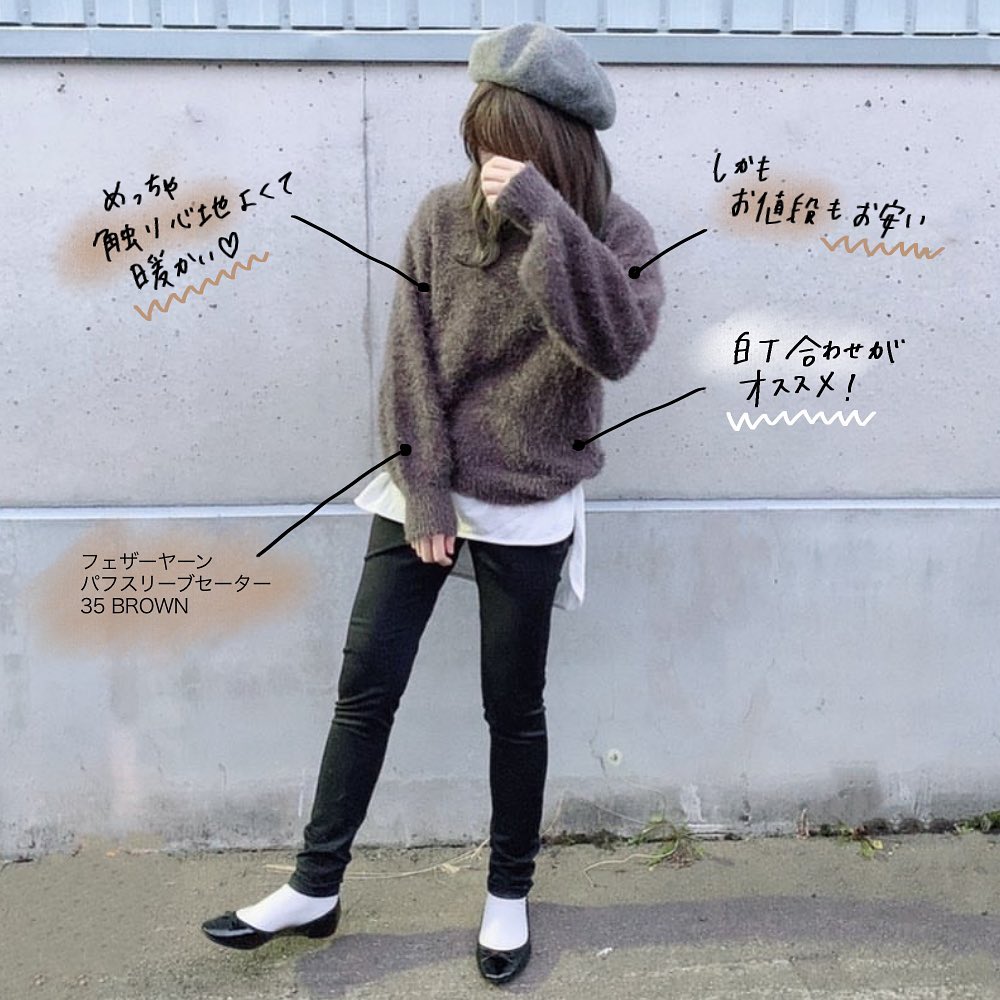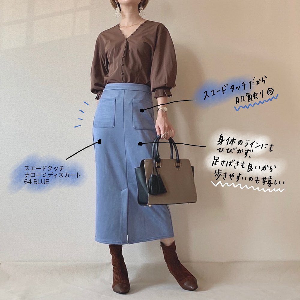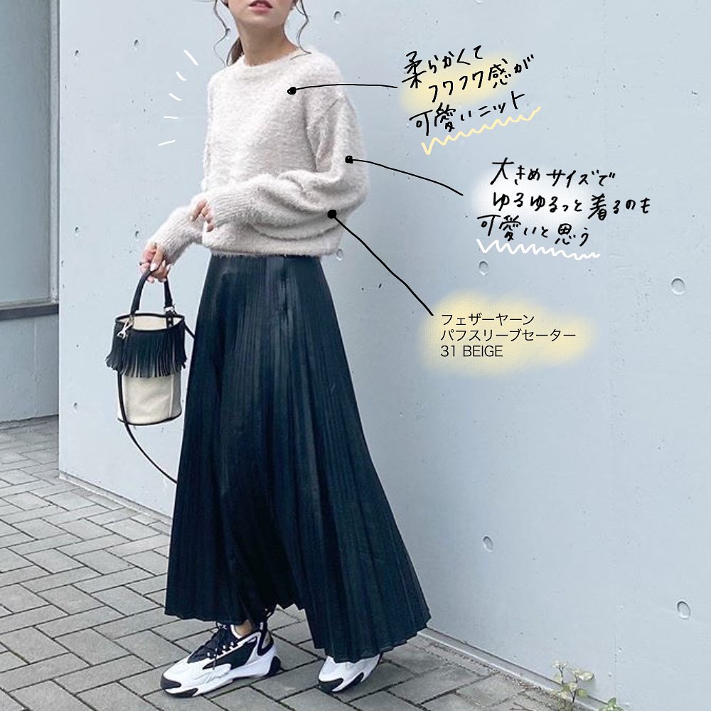 #フェザーヤーンパフスリーブセーター #スエードタッチナローミディスカート #セ-ター #ミディスカート #カジュアル #フェミニン #シンプルコーデ #デイリーコーデ #秋コーデ #冬コーデ