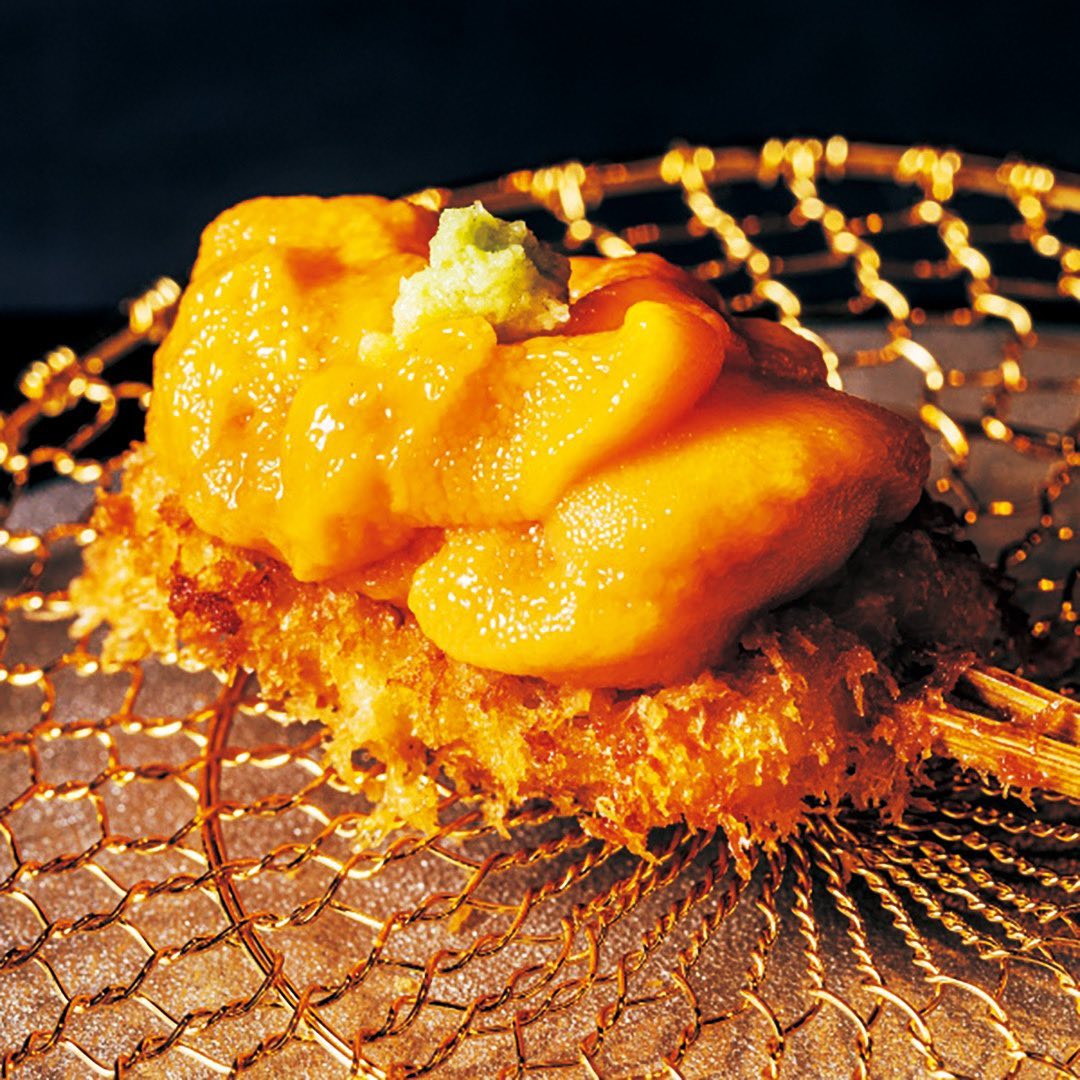 ①「子持ち昆布 北海道浜中町 赤ウニ」。生ウニと山葵、出汁醤油の風味に加え、食感も楽しい
