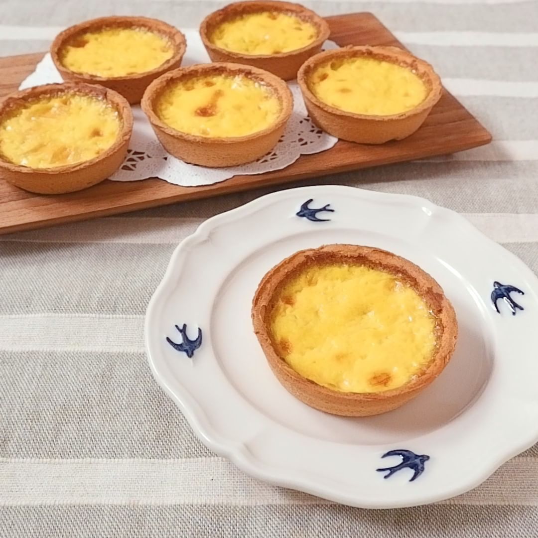 焼きプリンタルトのご紹介です。卵と牛乳のコクのあるプリン液をミニタルト台に入れ香ばしく焼いた、ティータイムやちょっとしたおもてなしにもぴったりな一品です。市販のタルト台を使用することで、簡単に作ることができますよ。ぜひ、お試しくださいね。