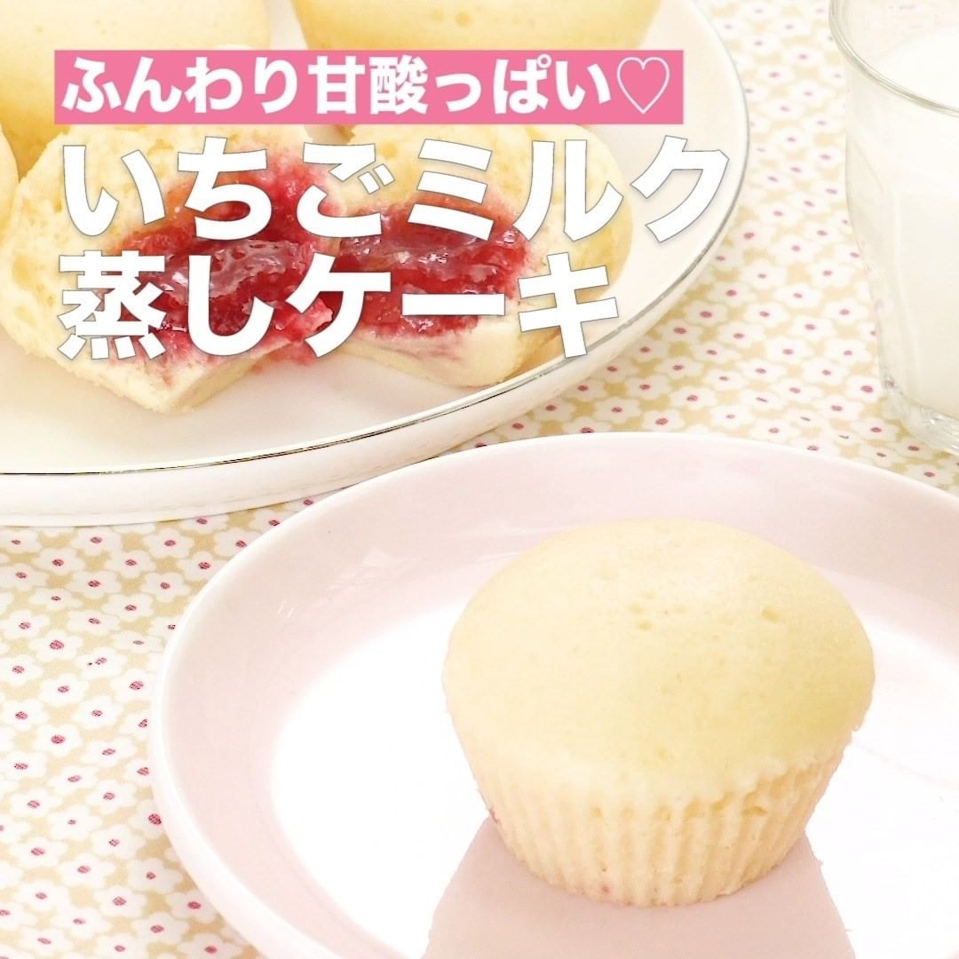 ④<ふんわり甘酸っぱい♡いちごミルク蒸しケーキ>
