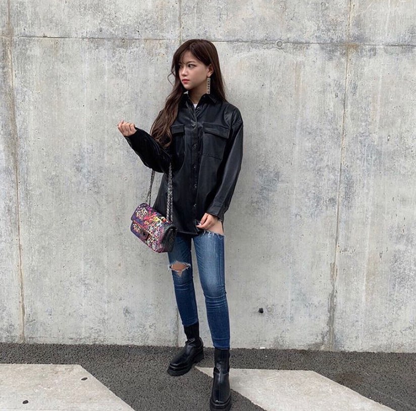 フェイクレザーダブルポケットシャツコーデをPick up!細身ジーンズに、ざっくり合わせたフェイクレザーシャツがカッコイイ🥰軽い着心地だから、楽ちんに着こなせる優秀アイテム✨クールな大人コーデを楽しみたい時に、ぴったりですね👌トレンドライクなアイテム🙌