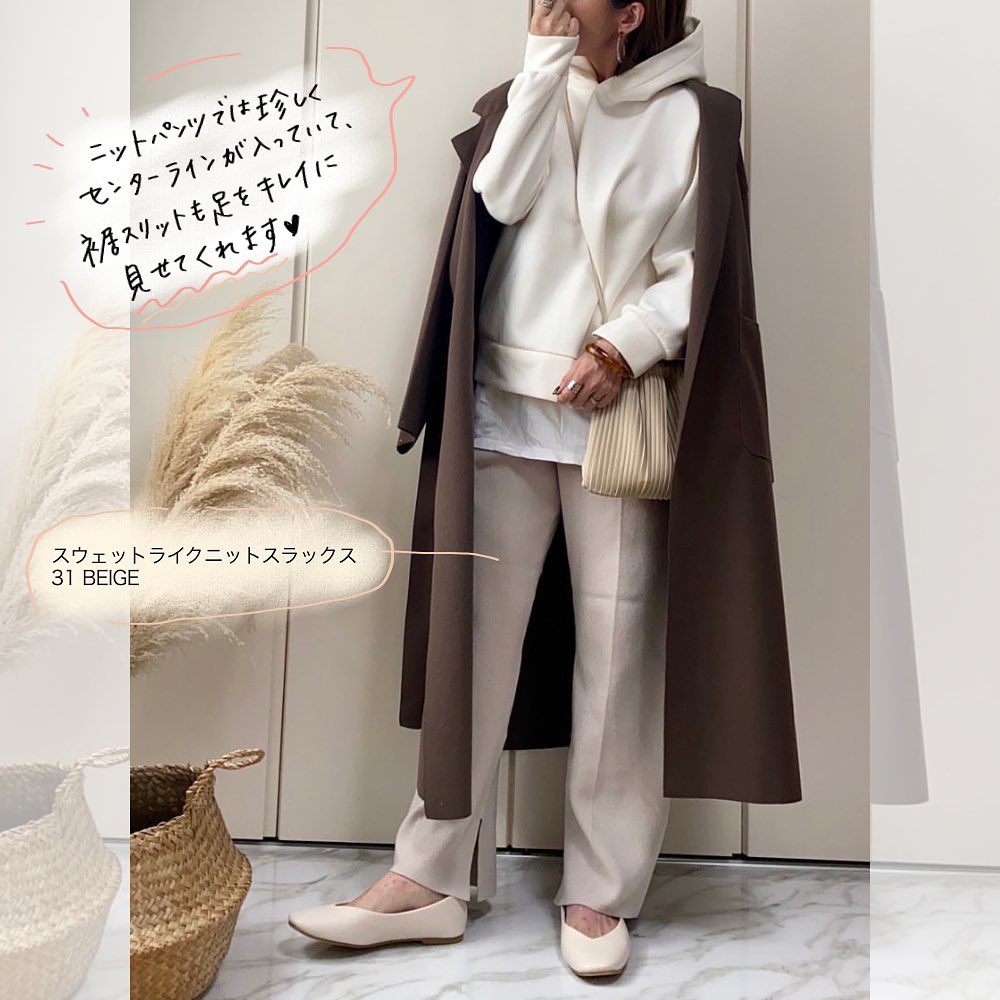 #スウェットライクフーディニットチュニック #スウェットライクニットスラックス #ニット #セーター #ニットチュニック #スラックス #シンプルコーデ #デイリーコーデ #秋コーデ #冬コーデ
