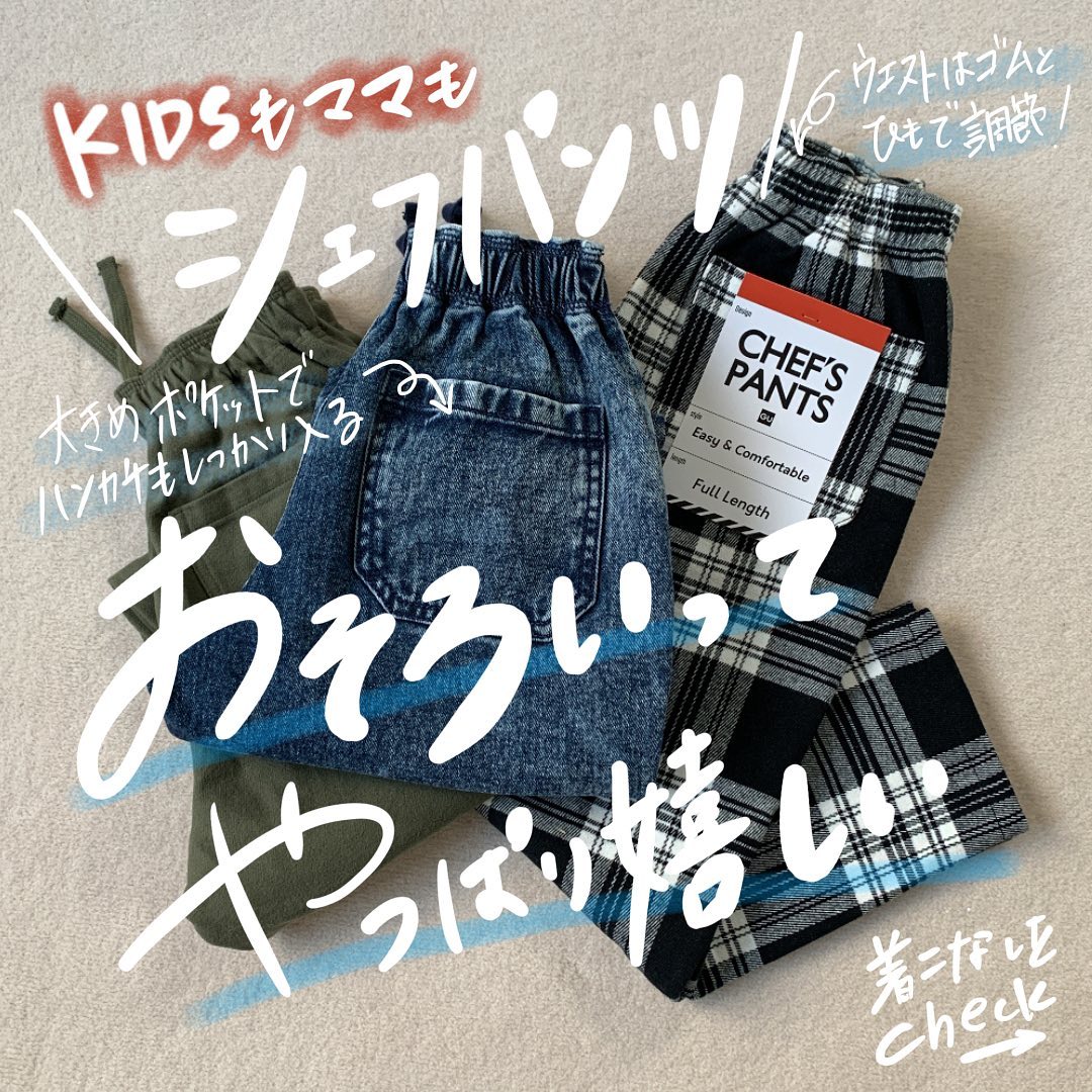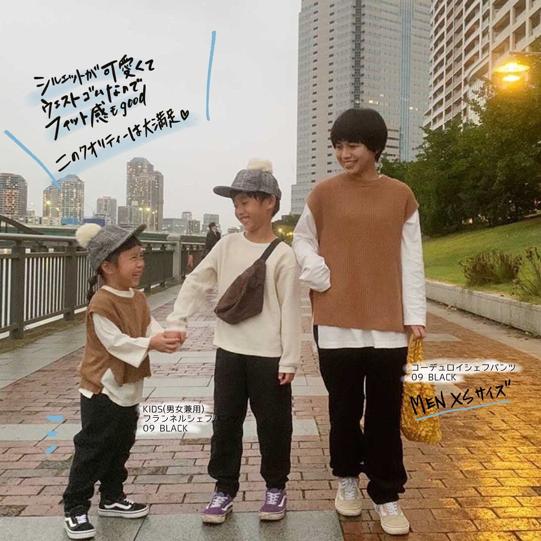 おそろいってやっぱり嬉しい🥰キッズのシェフパンツに大注目👍はき心地が楽ちんで、素材も手を抜かず丈夫、テーパードのシルエットがお洒落に着こなせるから👏男の子も女の子も、バッチリです👌秋冬仕様の大人のシェフパンツも、はき心地良し🙌是非、チェックしてみてくださいね💁♀️💕