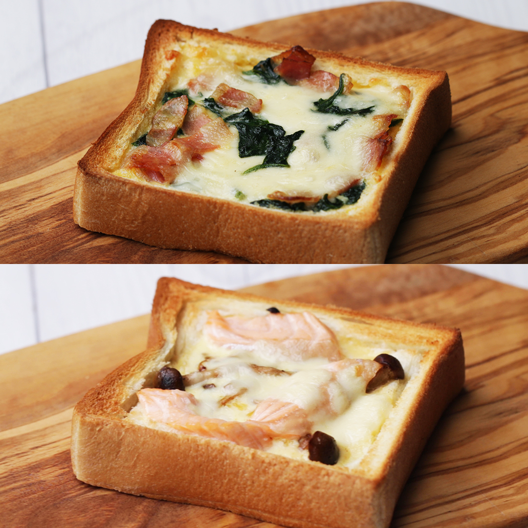 5.パンに(1)とサーモンを入れ、(3)を流し込む。