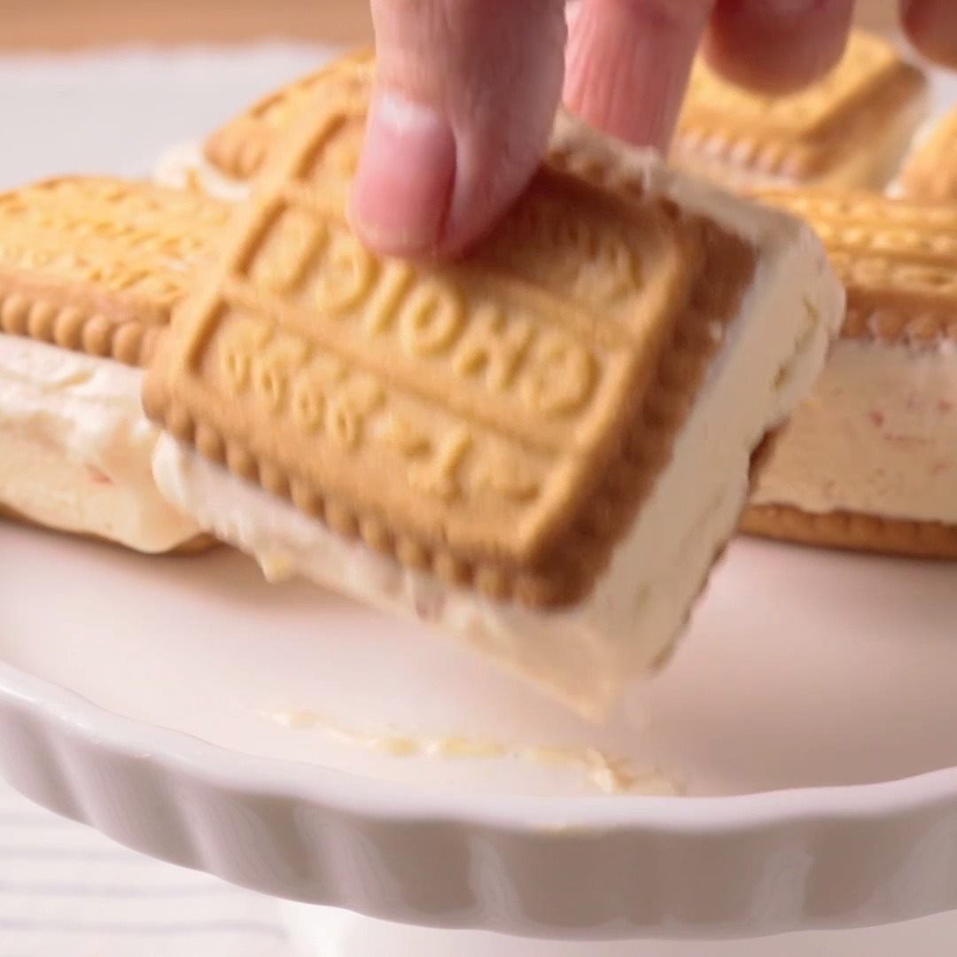 見た目も可愛らしいストロベリークッキーアイスサンドのレシピです。手作りの濃厚なアイスと甘酸っぱいいちごが香り、サクサクのビスケットと相性抜群な一品です。