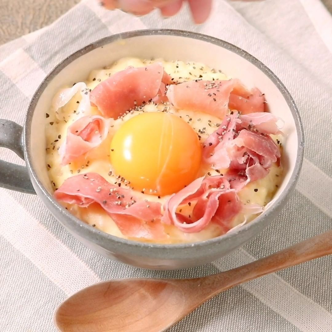 お鍋ひとつでお作りいただける、濃厚カルボナーラリゾット風のご紹介です。とても簡単にお作りいただけますよ。生ハムの風味がとてもおいしい一品です。今晩のあと一品にいかがでしょうか。ぜひこの機会にぜひ作ってみてくださいね。
