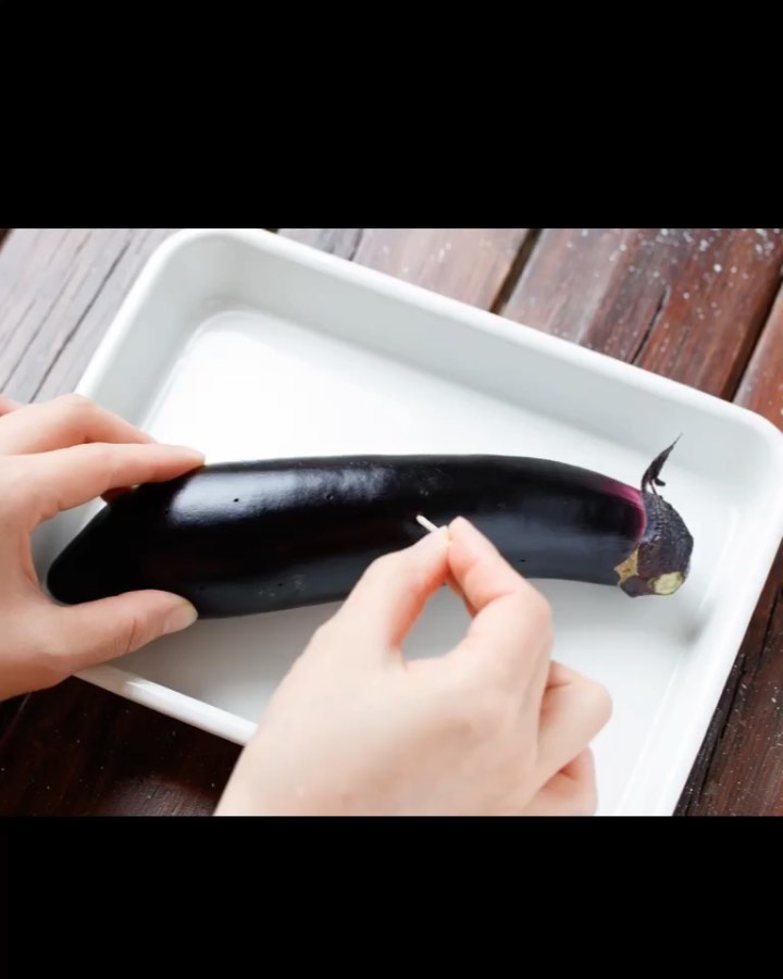 すぐに冷水に取ると色鮮やかに仕上がりますよ〜🍆✨