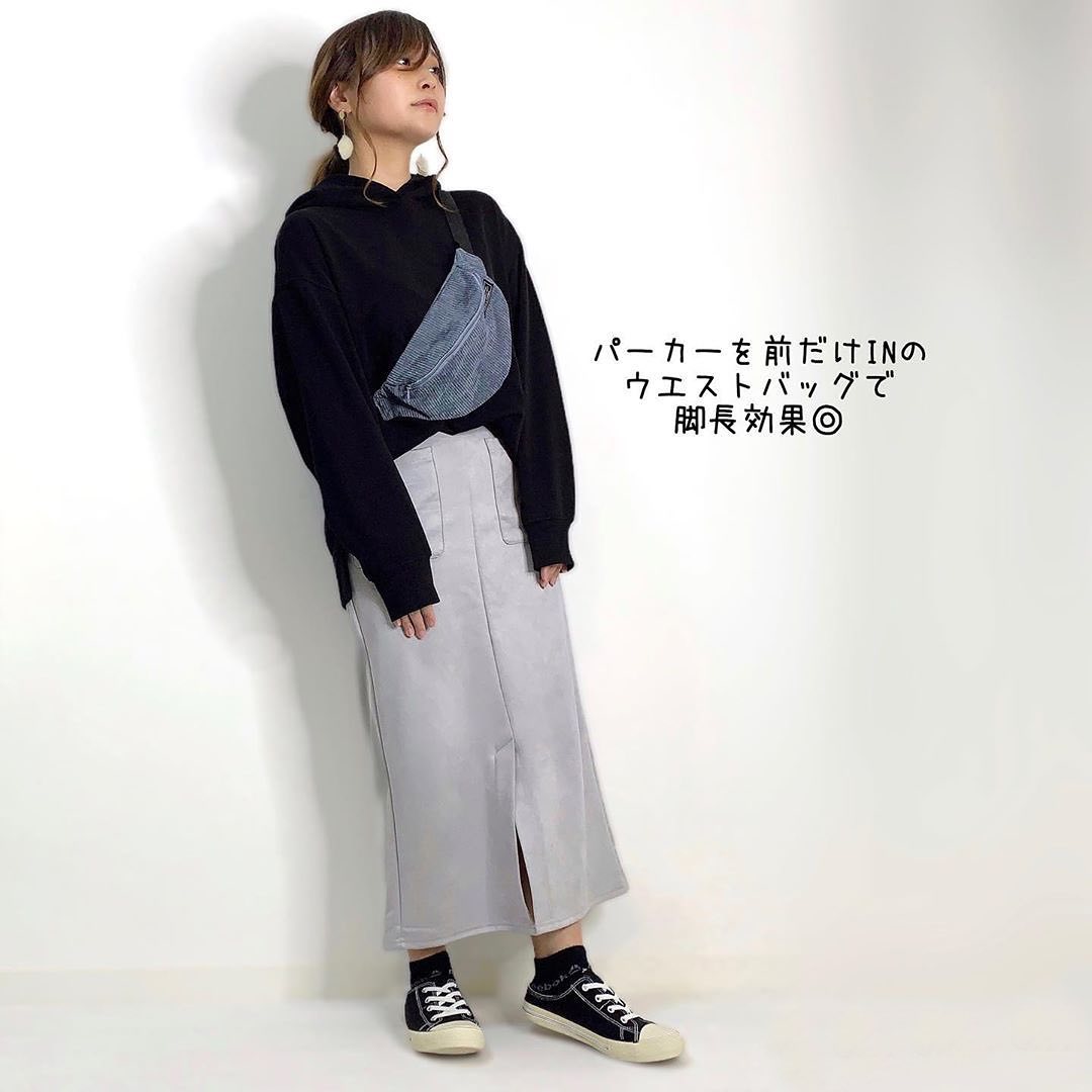 スエードタッチナローミディスカートコーデをPick up!しっとりしたスエードタッチが、体に馴染むからきれい✨大人っぽいグレーが、絶妙な光沢感を作ってくれるのでGOOD👍カジュアルに、パーカ合わせも可愛いです😘