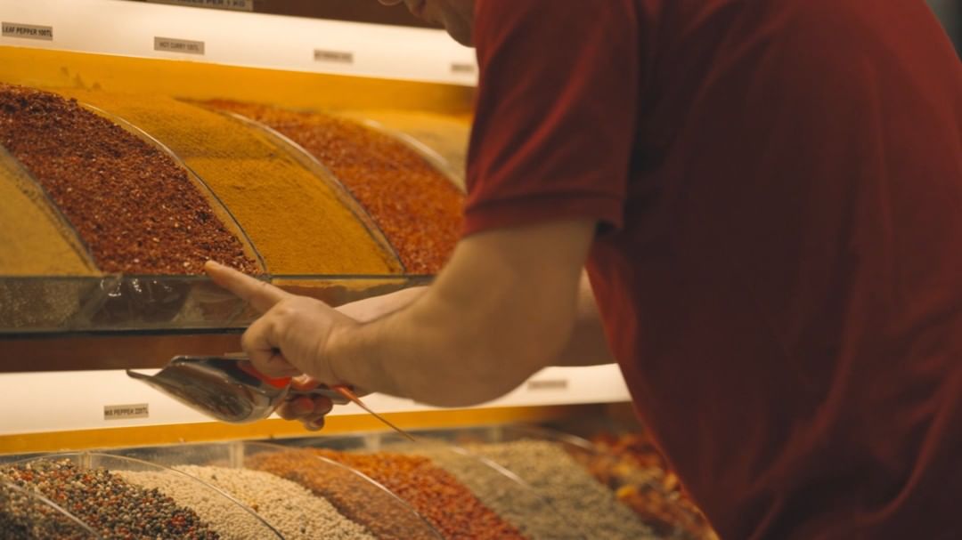After scooping, the storekeeper smooths the spices