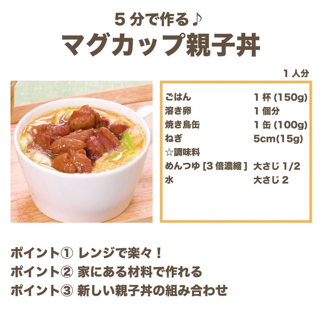 #今日のごはん #献立 #おかず #簡単料理 #時短レシピ #時短料理 #手作りごはん #手作り料理 #キッチングラム #簡単ランチ #おうちご飯 #お家ごはん #一人暮らしごはん #親子丼 #マグカップ親子丼 #朝食 #朝ごはん #即席ごはん