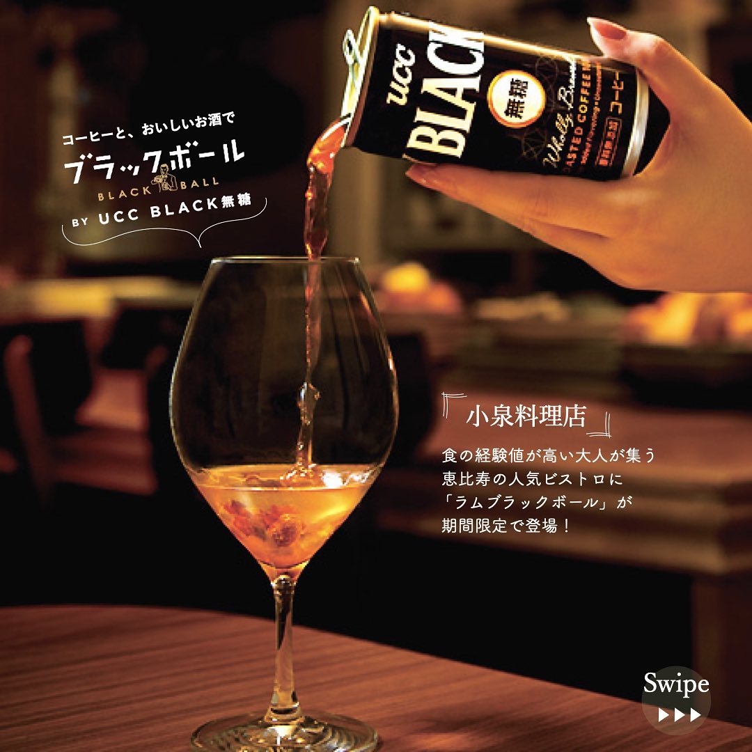 「UCC BLACK無糖」で割った「ラムブラックボール」(¥1,000)