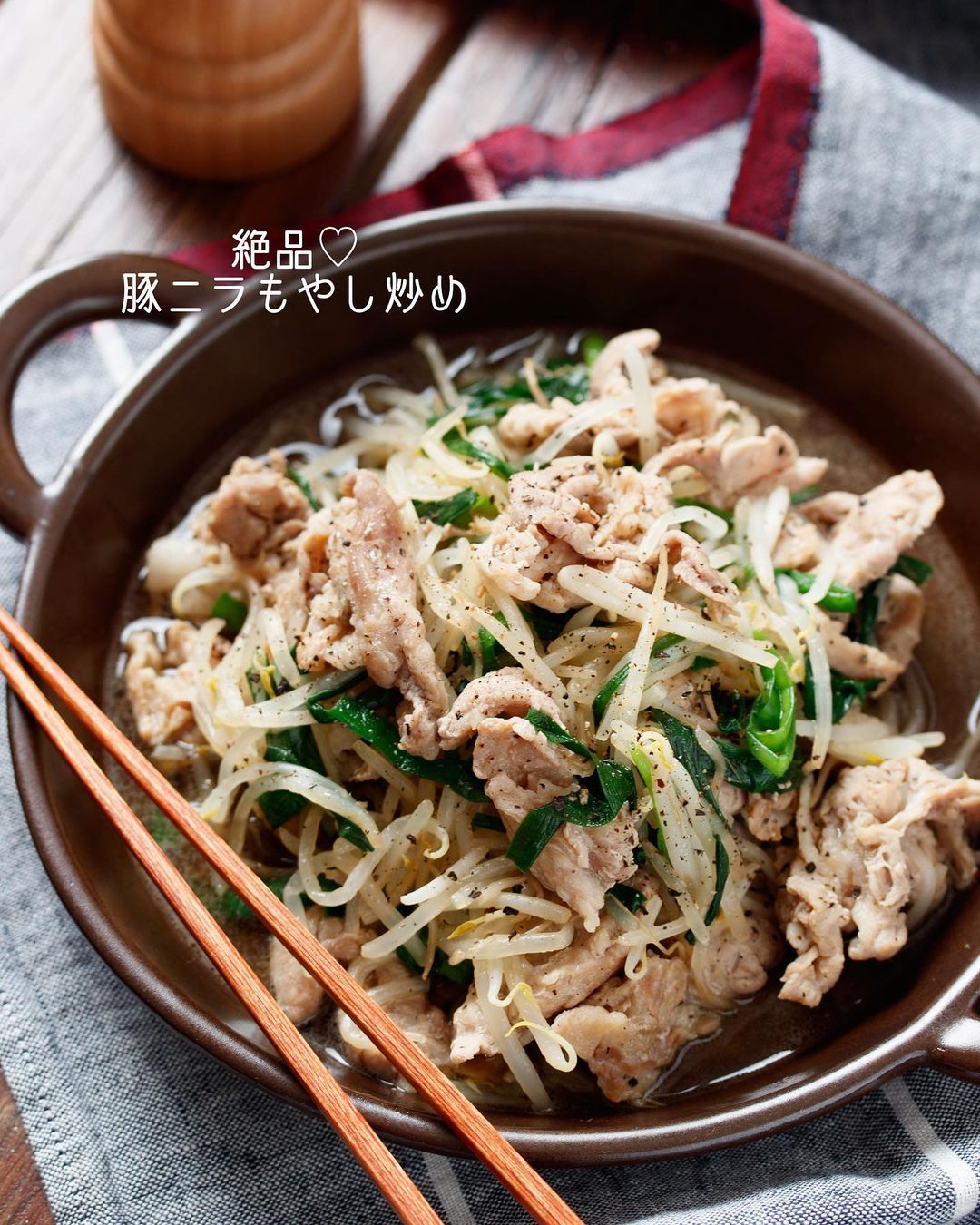 #簡単 #簡単レシピ #レシピ #節約 #時短 #時短レシピ #food #recipe #cooking #料理好きな人と繋がりたい #器好き #器 #写真好き #楽うま #おかず #自分時間 #自分磨き #もやし #ニラ #豚肉 #豚バラ薄切り肉