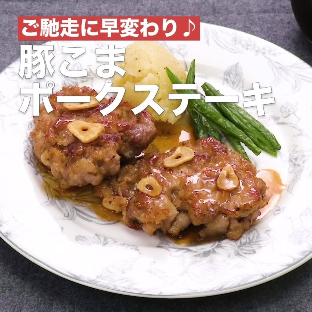③<ご馳走に早変わり♪豚こまポークステーキ>