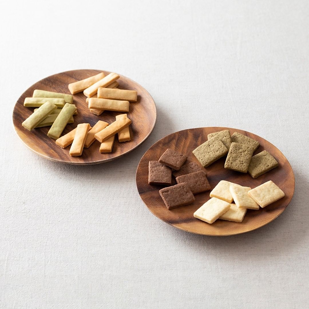 サクサクとしたサブレは、プレーン、ココア、ほうじ茶、3種類の味わい。しっかりとした食感のスティックサブレは、プレーン、にんじん、ほうれん草から選べ、それぞれのやさしい甘みが楽しめます。