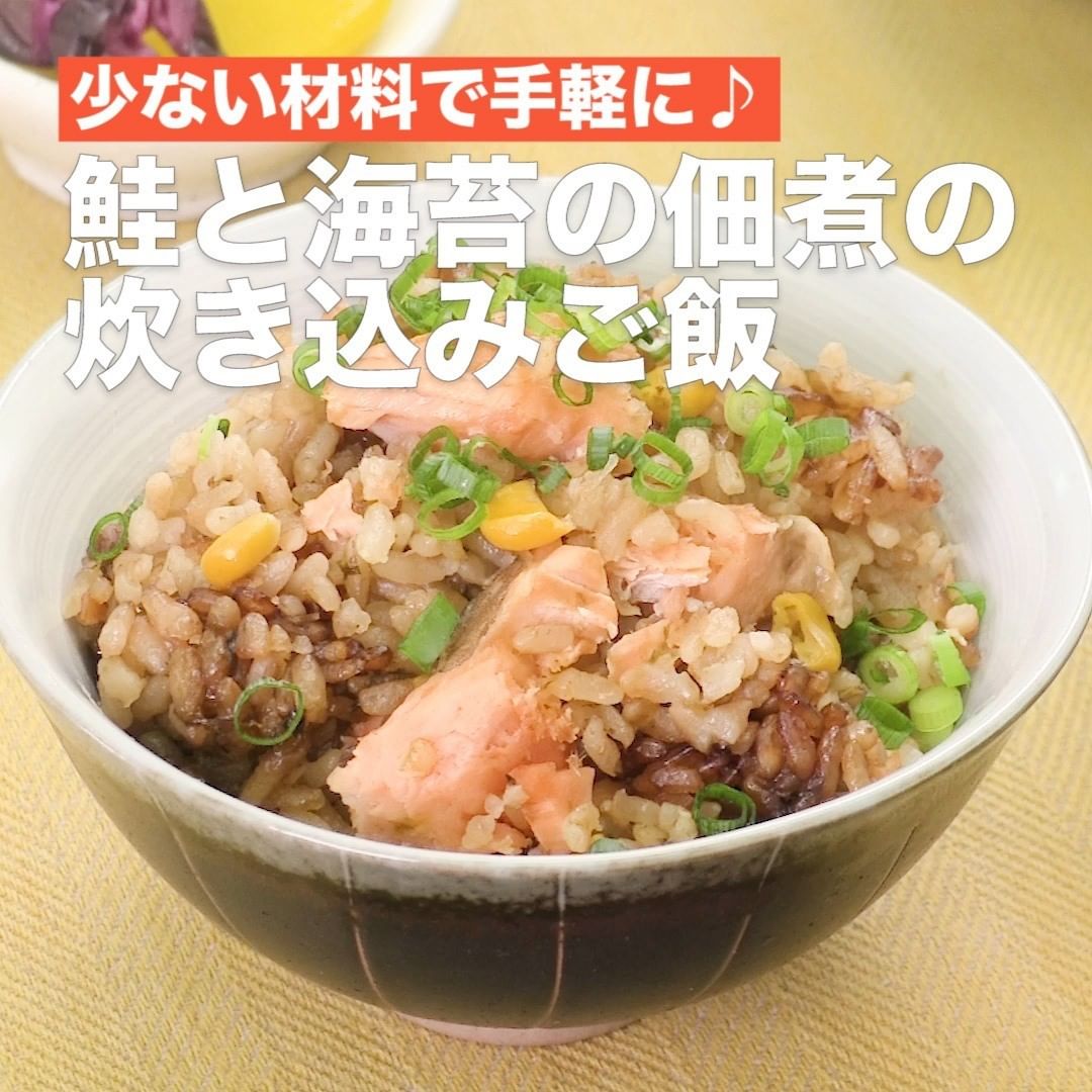 余りがちなのりの佃煮を鮭と一緒に炊き込みご飯に入れて、旨味アップ!炊き込みご飯にチーズをかけ、アレンジするのもオススメです♪
