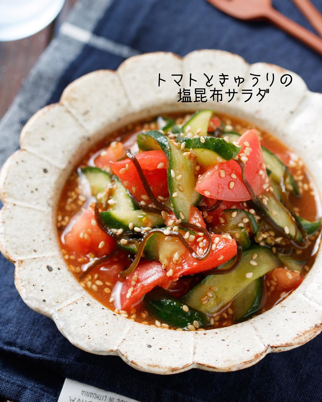 #簡単 #簡単レシピ #レシピ #節約 #時短 #時短レシピ #food #recipe #cooking #料理好きな人と繋がりたい #器好き #器 #写真好き #楽うま #おかず #自分時間 #自分磨き #トマト #きゅうり #塩昆布 #サラダ