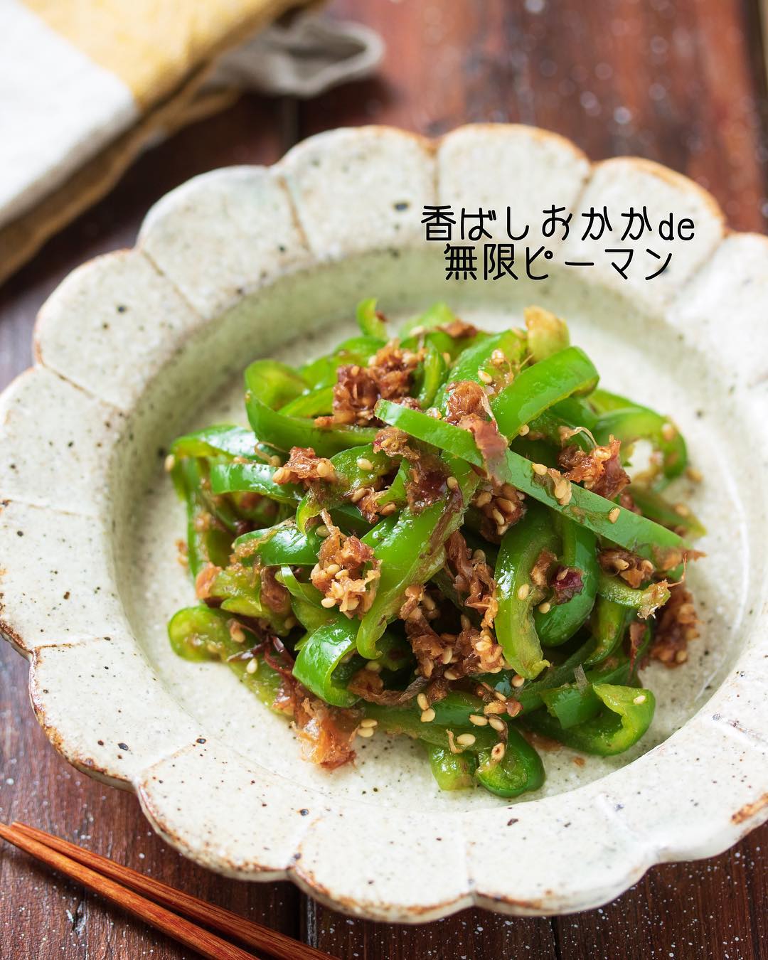 #簡単 #簡単レシピ #レシピ #節約 #時短 #時短レシピ #food #recipe #cooking #料理好きな人と繋がりたい #器好き #器 #写真好き #楽うま #おかず #自分時間 #自分磨き #ピーマン #かつお節 #無限ピーマン