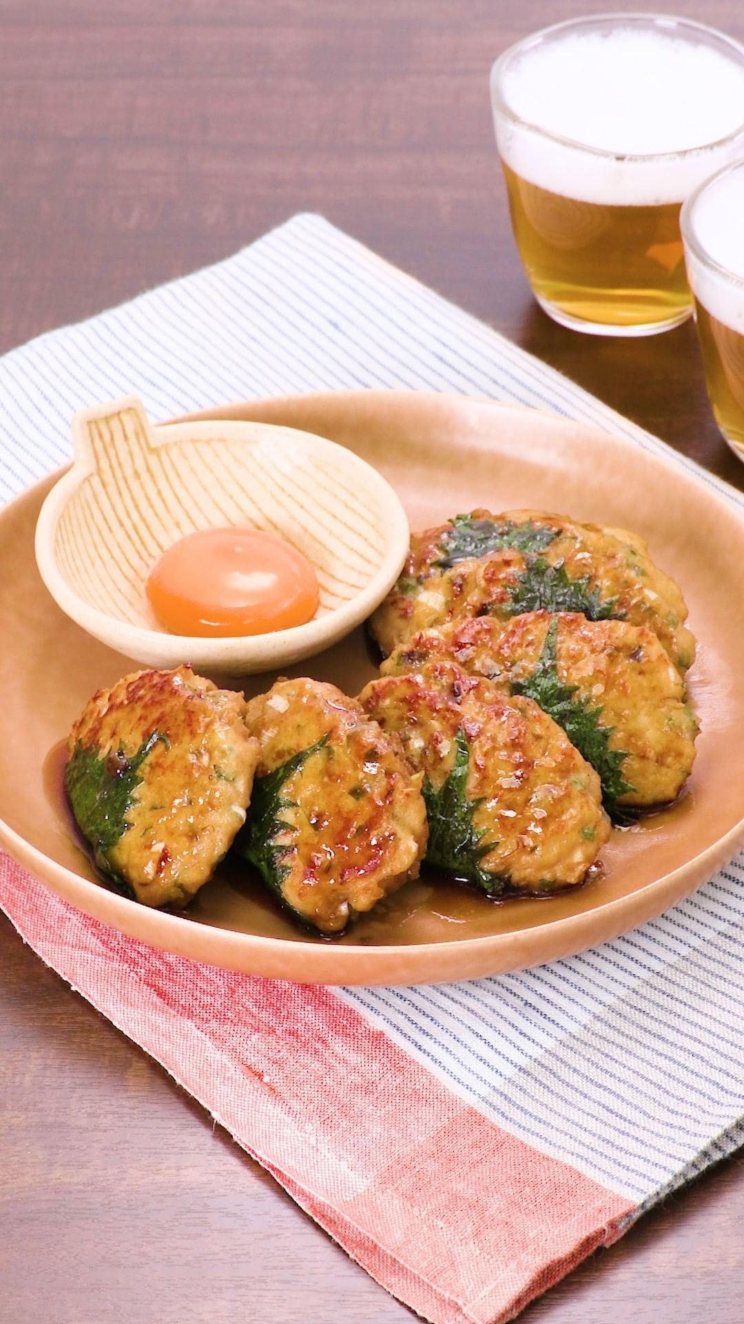 大葉を肉だねと表面のダブル使いで風味良く仕上げたつくねをご紹介します♪お酒のおつまみやごはんのおかずにぴったりのこってりとした味付けです!卵黄をとろっとからめてお召し上がりください。