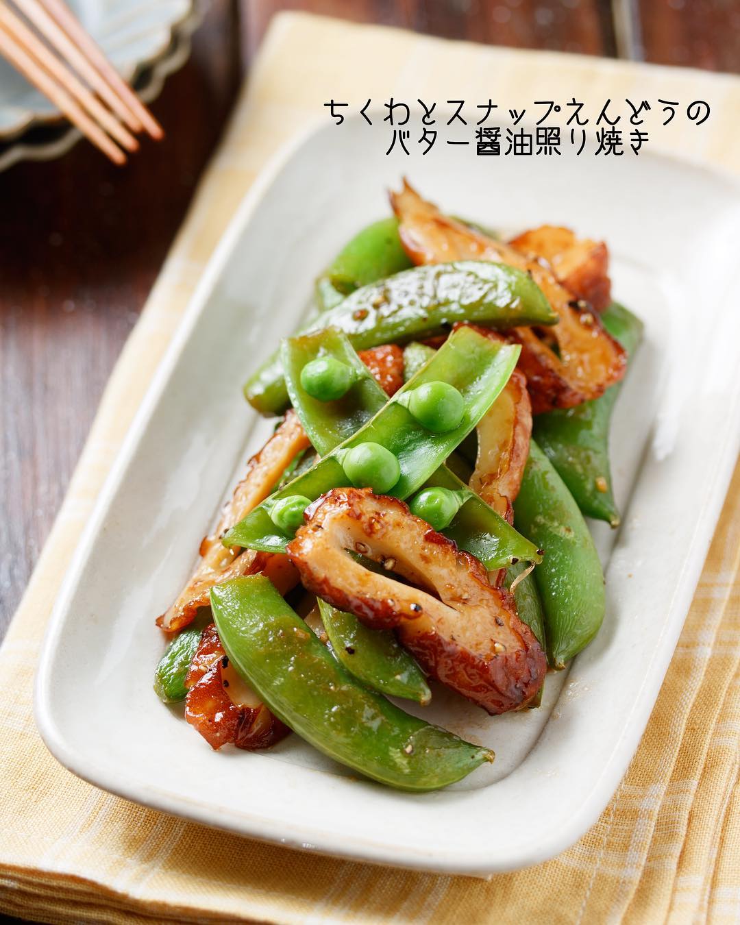 #簡単 #簡単レシピ #レシピ #節約 #時短 #時短レシピ #food #recipe #cooking #料理好きな人と繋がりたい #器好き #器 #写真好き #楽うま #おかず #自分時間 #自分磨き #ちくわ #香ばし生ちくわ #スナップエンドウ #スナップえんどう #バター醤油 #照り焼き