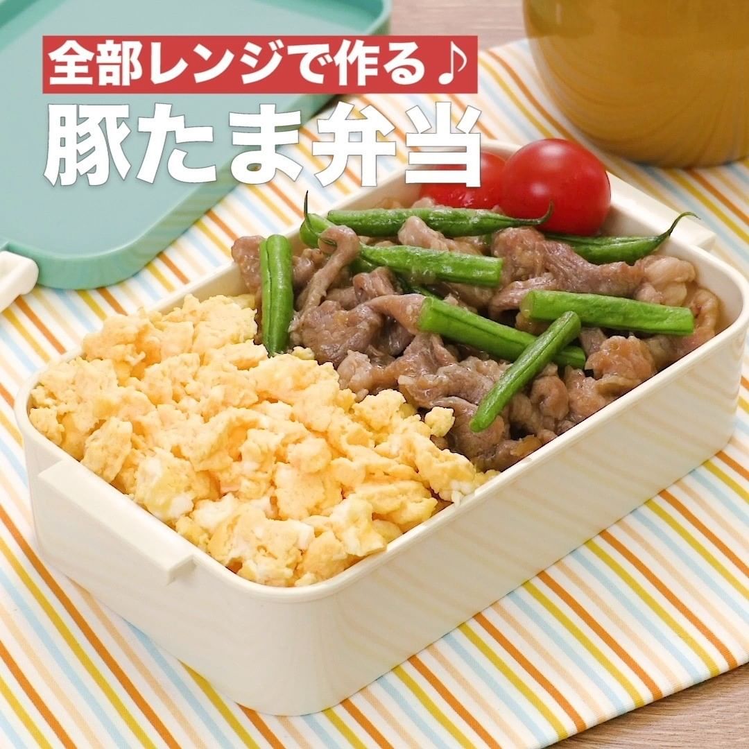 ④<全部レンジで作る♪豚たま弁当>