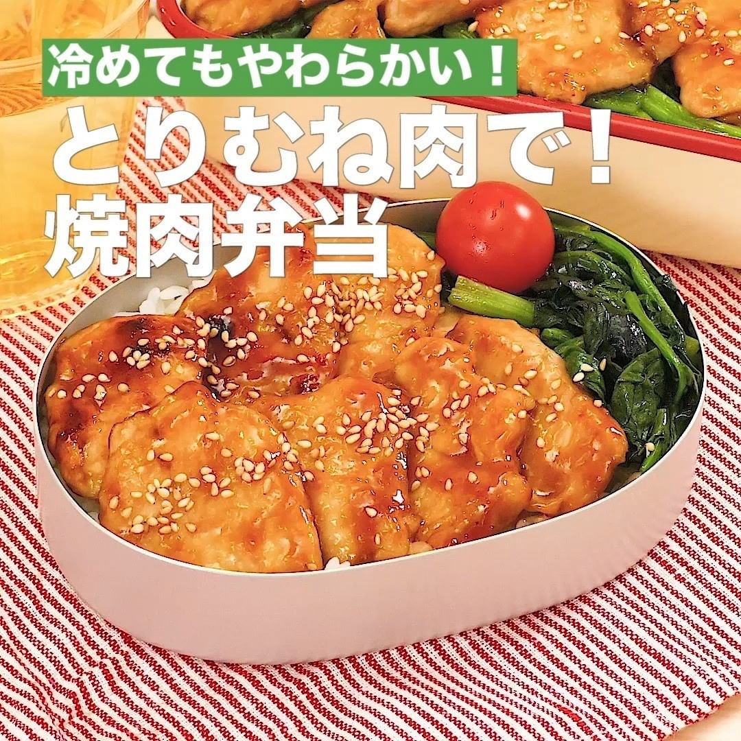 ①<冷めてもやわらかい!とりむね肉で!焼肉弁当>